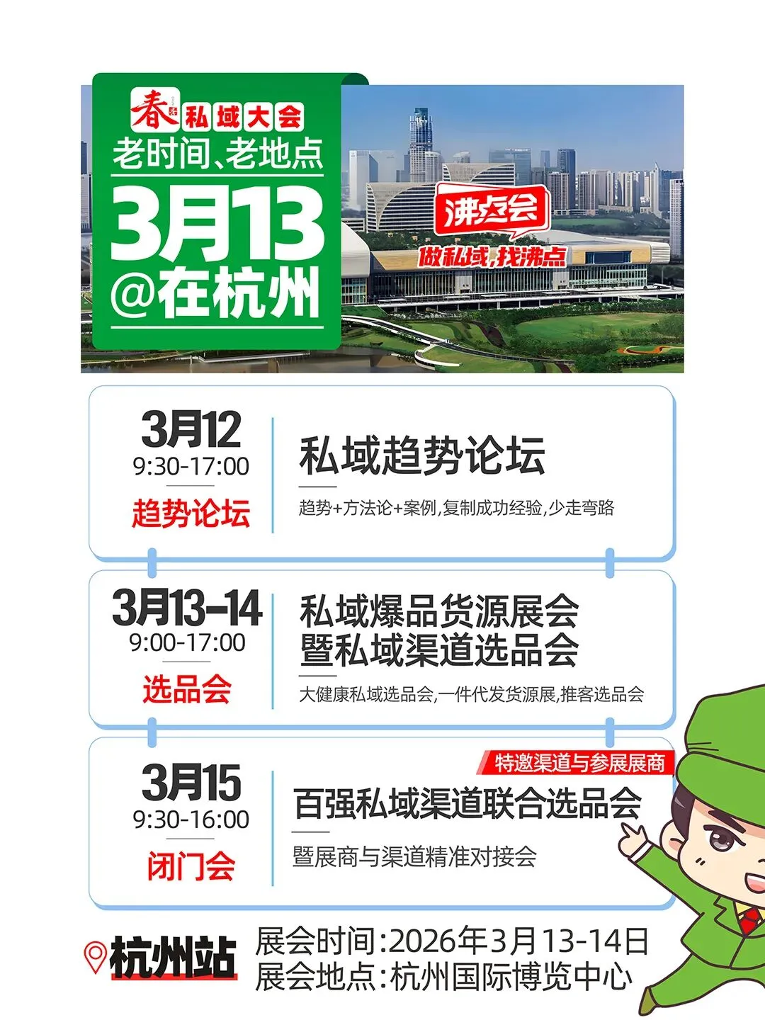 3月13-14日:2026春季新品爆品货源展;1000+供货商同台展示产品,98%私域头部渠道现场选品。