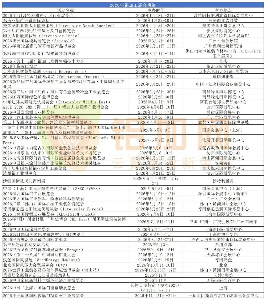 编辑:铝加网编辑陈建明 声明:本文内容来源于网络公开资料,由铝加网编辑整理,用目的在于传递更多信息,并不代表本公众号赞同其观点和对其真实性负责。如涉及作品内容、版权和其它问题,请来电或致函告之,我们将及时给予处理!