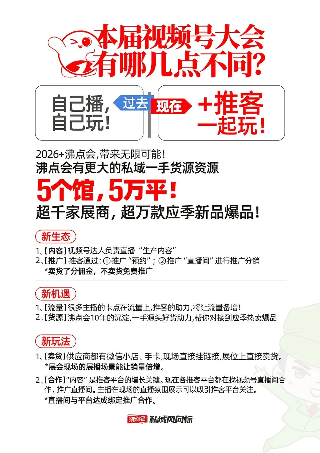✅ 视频号+推客,私域新玩法全面公开大会首创“视频号达人创作内容 + 推客分发推广”模式,帮你打破流量瓶颈,实现销量倍增。现场还有“万人推客大会”“快团团团长选品会”等多场同期活动,打通从内容到销量的全链路。