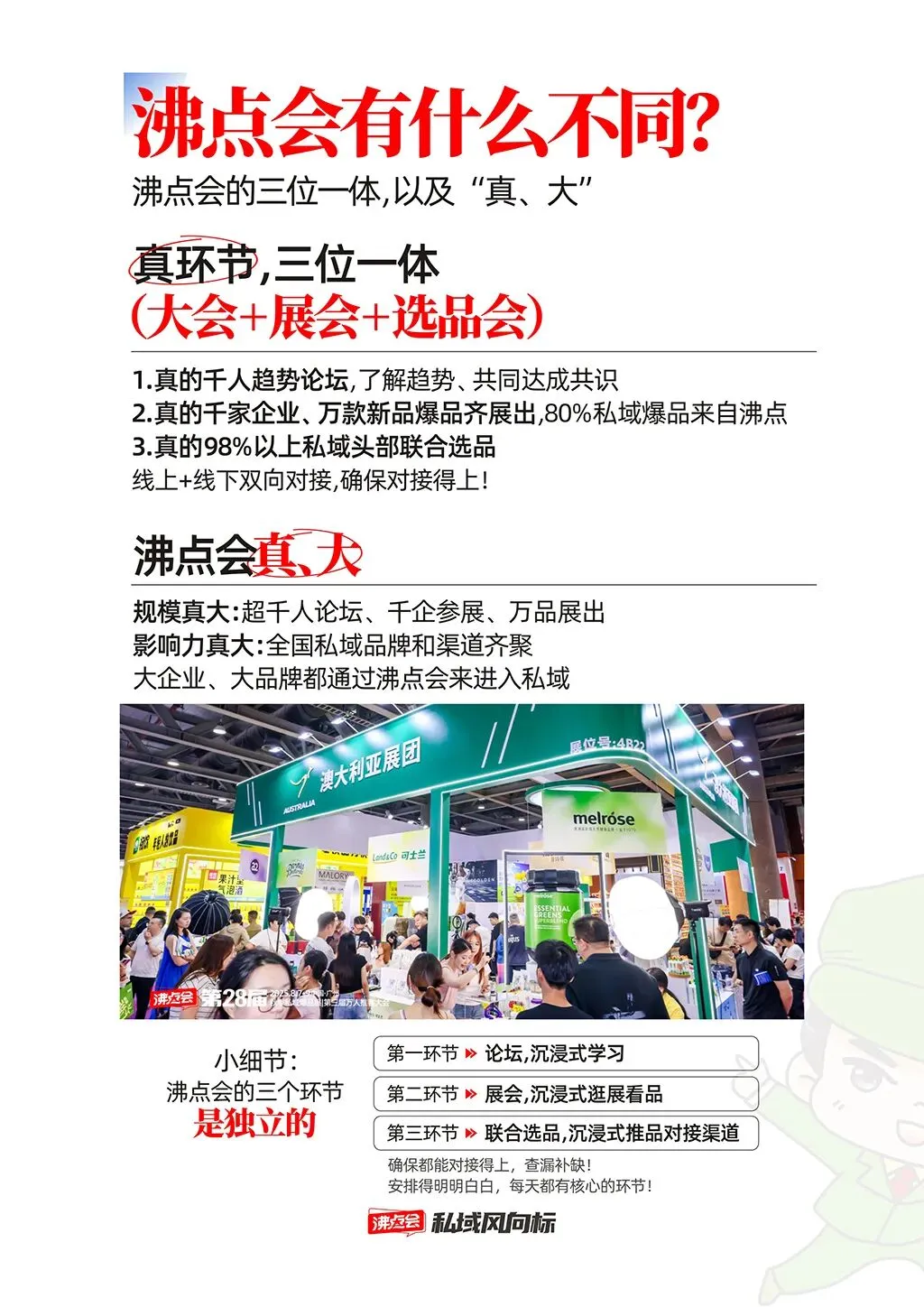 ✅ 千企万品,一手货源直供5大展馆、5万平米、超1000家展商、超10000款应季新品爆品,覆盖食品、家居、美妆、大健康、地标特产等全品类。80%私域爆品源自沸点会,你来,就能对接源头好货。