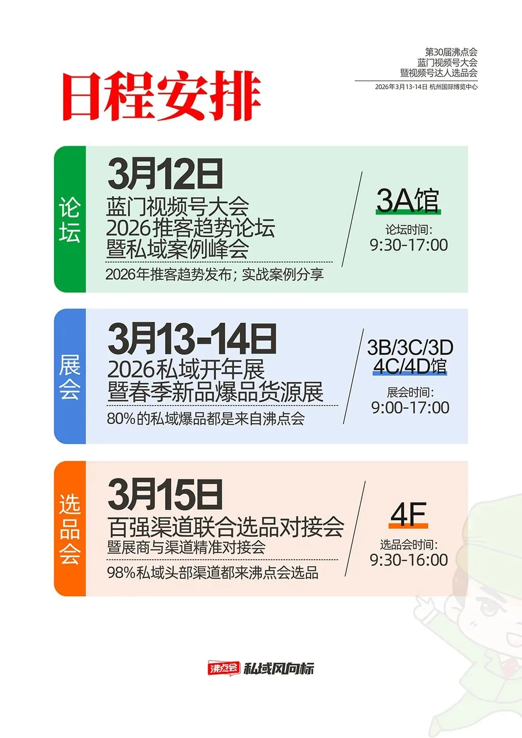3月13-14日,杭州国际博览中心,由沸点会与蓝门联合主办的 第六届蓝门视频号大会暨视频号达人选品会 即将盛大开幕!这是一场专为私域人打造的“资源盛宴”,更是一次链接视频号生态、掌握未来玩法的绝佳机会。