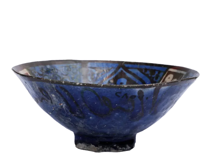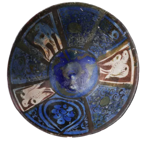 碗中绘有动物和植物纹饰,且写有一种文字,可能表明它是在伊朗制作的。