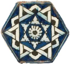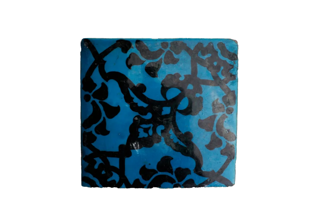 这属于奥斯曼时期非常流行的方形瓷砖(波斯装饰艺术),蓝色背景下绘有黑色花纹作装饰。