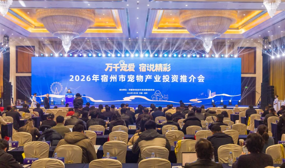 近日,2026年宿州市宠物产业投资推介会成功举办。本次盛会期间,来自全国各地的相关行业协会负责人、知名企业代表、产业专家学者齐聚一堂,共商宠物产业发展大计,为宿州宠物产业高质量发展注入强劲动力。