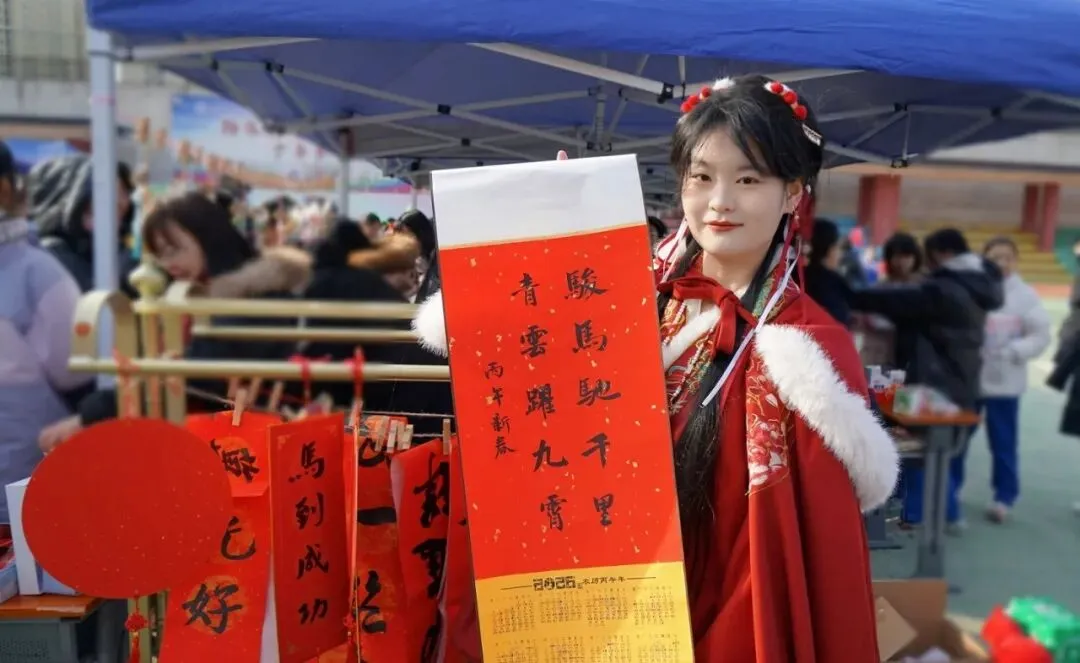 引人注目的“文创角落”,学子将新年祝福写在宣纸上,每一笔都是对传统文化的深情告白;手绘明信片、定制插画书签吸引着目光,色彩斑斓中跳跃着创意的火花。