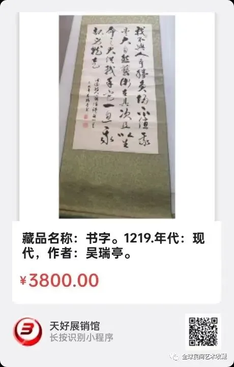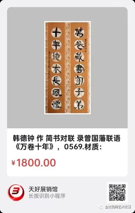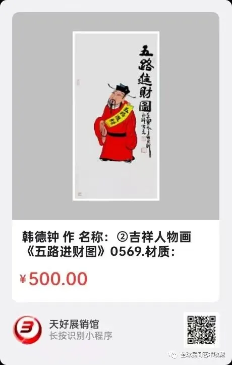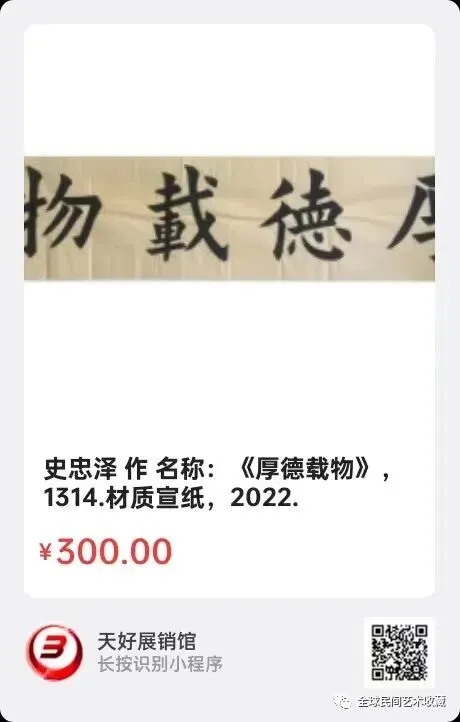 网络展销地址:《全球民间艺术收藏》《天好文化》,《天好展销馆》前二个微信公众号每期发布展讯,进《天好展销馆》购买。