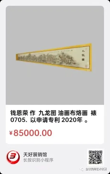 钱恩荣 作 九龙图 油画布烙画 裱 以申请专利 570 - 52cm 2020年 。0705.V.