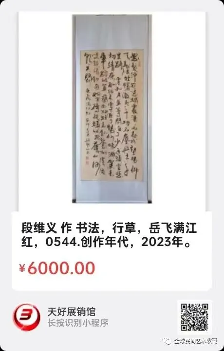 段维义 作 书法,行草,岳飞,满江红,尺寸,四尺整张,创作年代,2023年。0544.V.