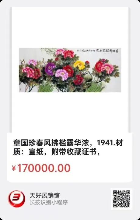 章国珍春风拂槛露华浓,180×80cm。材质:宣纸,附带收藏证书,来源:网拍,来源1941。