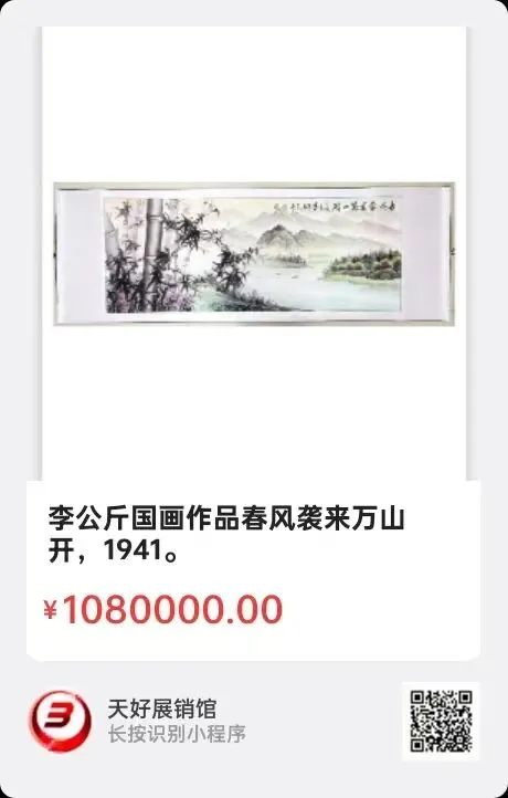 李公斤国画作品春风袭来万山开,232×79cm,材质:宣纸,约为16平尺 ,中检鉴定为真。来源1941。