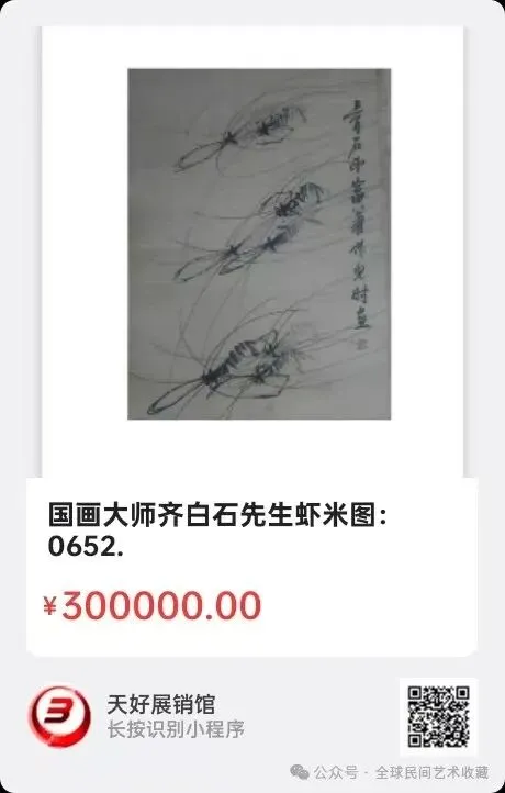 国画大师齐白石先生虾米图:长92cm,宽49cm。来源0652.