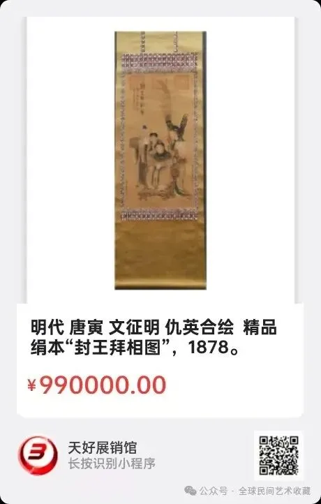 明代 唐寅 文征明 仇英合绘 精品绢本“封王拜相图”,画心39.5cmx77cm,来源1878。