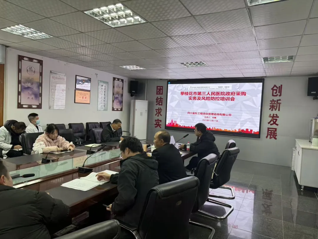 为进一步规范政府采购行为,提升采购工作的专业性与风险防控能力,2025年12月17日,四川金松工程项目管理咨询有限公司受邀为攀枝花市第三人民医院开展政府采购实务及风险防控专题培训会。