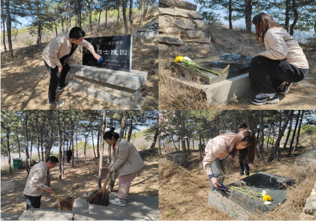 随后一行人前往敖破烈士陵园,全体人员一一敬献鲜花,并列队向长眠于地下的革命先烈们鞠躬默哀,以表对革命烈士的无限哀思和敬意。青山不语,丰碑永存,每一座烈士墓、每一段英雄故事,都激励我们砥砺前行,先烈们的英雄气慨感染了在场的每一个人。团员青年们分工协作,充分发扬不怕苦、不怕累的光荣传统,细心擦去碑体上的灰尘,挥动扫帚清理枯枝烂叶,捡拾路边积存垃圾,烈士陵园更显整洁、肃穆。