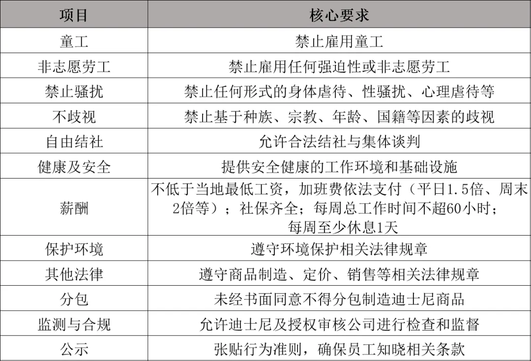 在该清单框架下,迪士尼进一步对供应商工厂实施分类管理:一类是需严格通过迪士尼社会责任验厂(ILS 审核)的国家和地区,另一类是无需开展专门验厂的国家和地区,具体分类需以迪士尼官方最新名单为准。