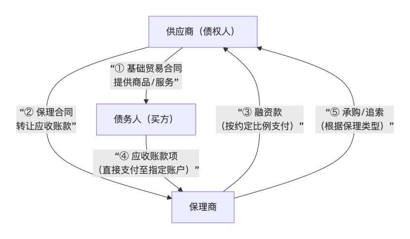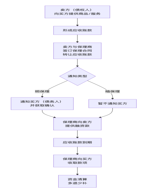 | | 应收账款转让:需确保债权真实、有效、无瑕疵。融资与还款:保理商提供融资,供应商在约定情况下(有追索权保理)可能需回购债权或偿还融资款。 |