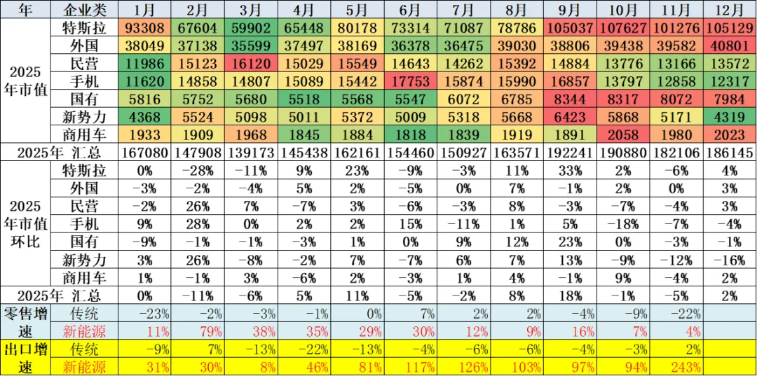 12月内销车企表现相对压力较大,出口是新能源车的核心增长,出口强的企业表现好一些。