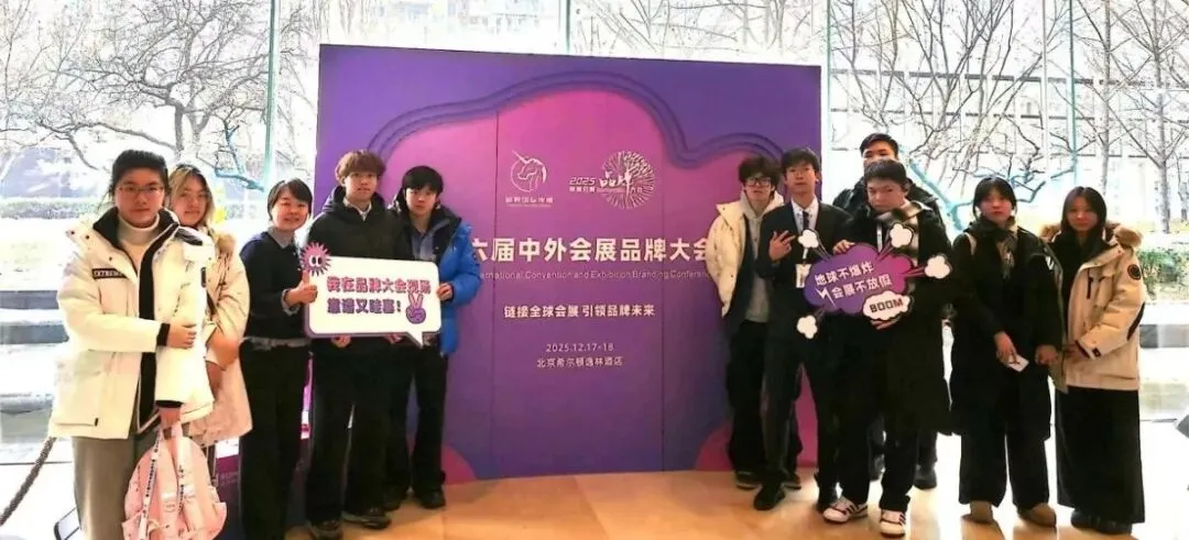 第二站,同学们前往北京希尔顿逸林酒店第六届中外会展品牌大会现场进行学习。作为会展行业的年度盛会,本届大会以“链接全球会展 引领品牌未来”为主题,汇聚了来自全国会展管理机构、行业协会、品牌主办方、知名场馆及服务商的近六百位行业精英,通过高规格的嘉宾阵容、前瞻性的议题设置与务实的对话交流,为与会者呈现了一场思想盛宴。