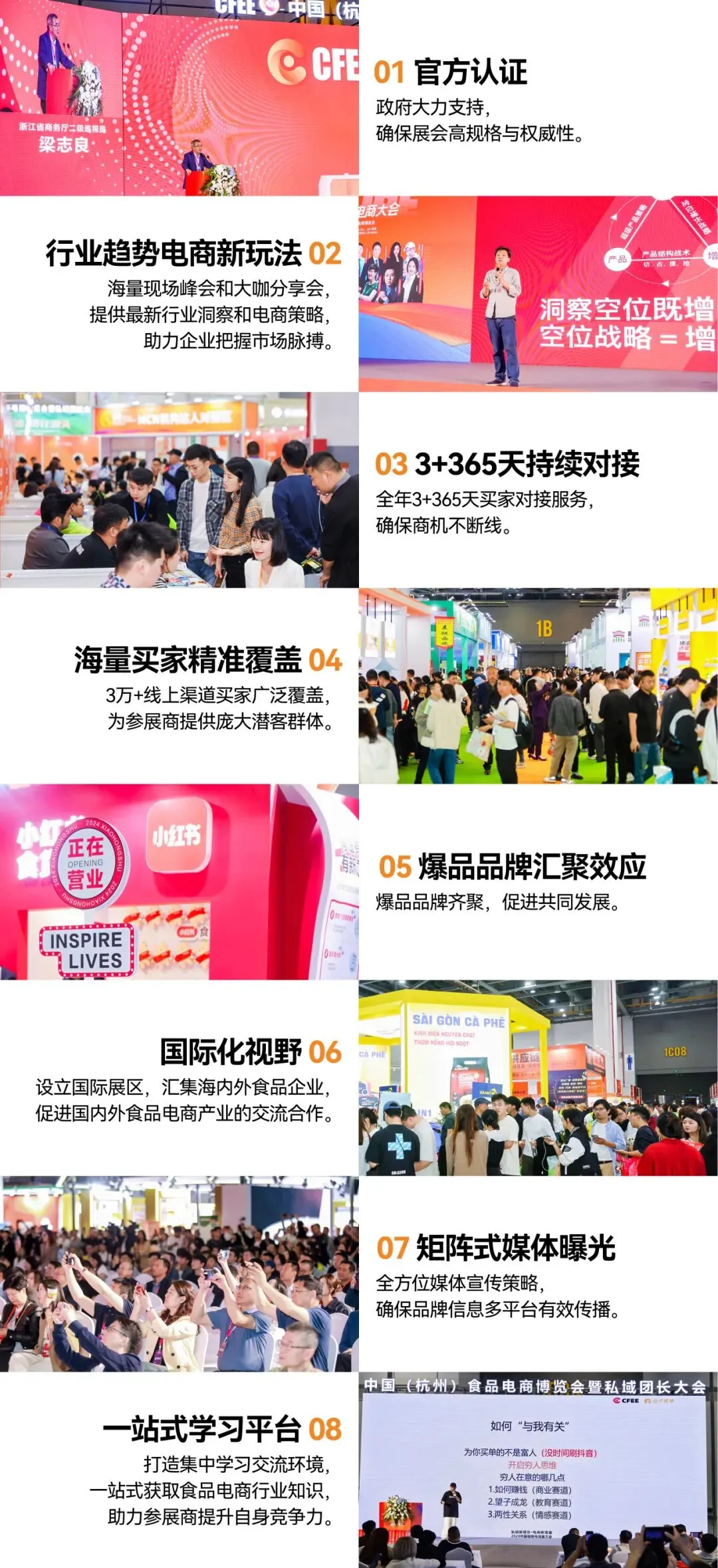 目前,第三届中国(杭州)食品电商博览会招展工作已全面启动。协会为各会员单位准备了专属参展福利,提供从标准展位到光地展位的多样化选择,可全方位满足不同规模、不同需求的企业的参展需求。