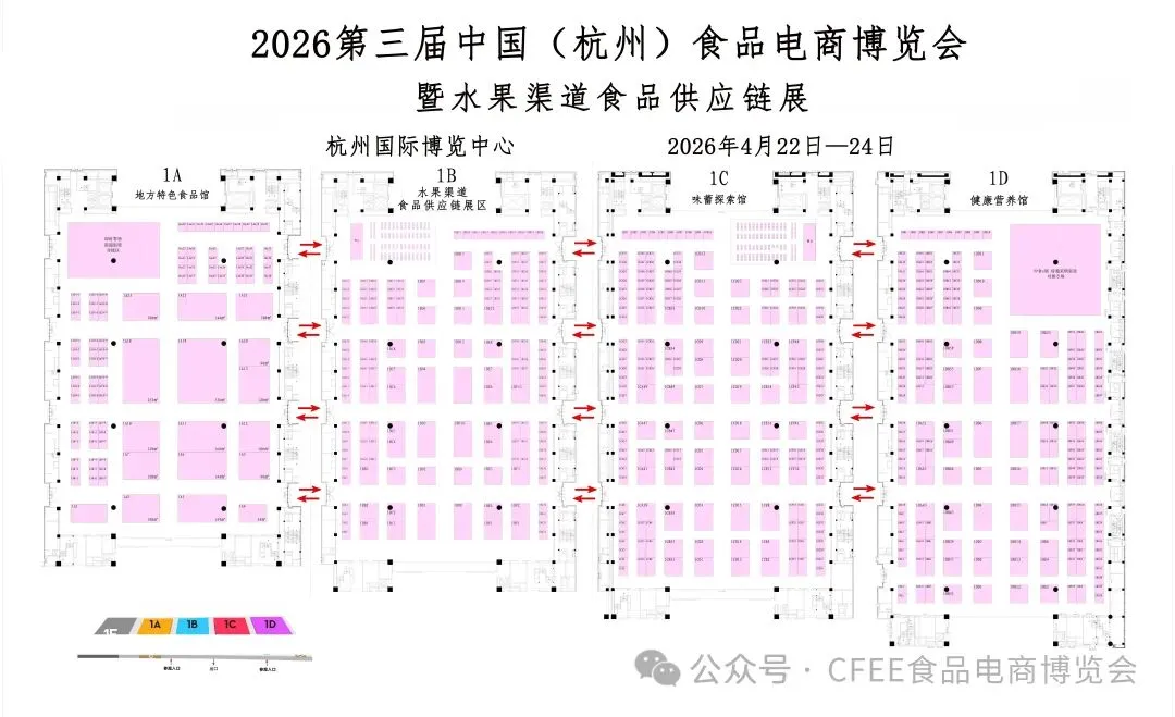 第三届中国(杭州)食品电商博览会暨大健康产业博览会、水果渠道食品供应链展(简称CFEE),将于26年4月22-24日在杭州国际博览中心举办,展览面积超6万平方米,预计吸引超10万+专业观众参与。