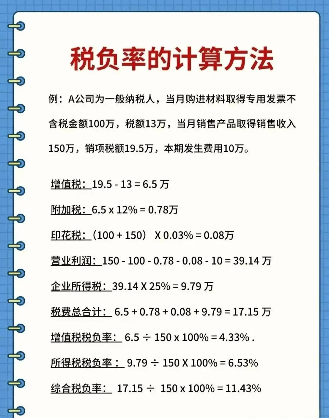 本身并没有一个很权威的规定什么,完全是随着个人或者公司的经营核算而出现的一个衡量指标,各个行业的税负率是不同的。