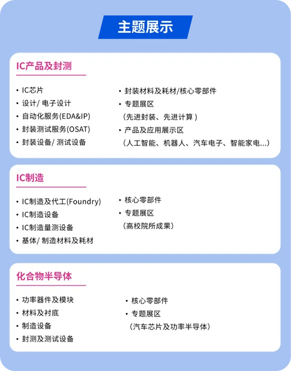 同时也将进一步强化在半导体制造领域的深度展示与资源对接,展示晶圆制造及代工、封装测试服务、半导体设备、半导体材料、化合物半导体、半导体核心零部件等核心制造环节的前沿技术与产品,持续服务半导体制造产业发展;