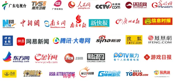 南方日报、广东广播电视台、羊城晚报、广州日报、《南方都市报》、新快报、搜狐、新浪、网易、腾讯、凤凰网、今日头条、优酷视频、爱奇艺视频、中新视频、南方网、中华网、环球文化网、今日中国、中国日报网、中国文化产业网、中国文化旅游网、文旅中国、文化旅游联盟网、文旅快报网、中国文旅网、中国网、中国演艺网、亚洲演艺网、舞台灯光网、中国旅游新闻网、游戏日报、国际游戏报、谷歌游戏网、中国乐游网、游乐网、中国电竞网、电玩巴士、中国企业报/中国企业网、中国贸易报/中国贸易新闻网、国际在线、光明网、环球网、人民网、央广网、《人民日报》海外网、新华在线、中宏网、中新网、中国商报网、中国报道网、中国财经网、人民日报《人民周刊》网、人民政协报/网、中国经济时报/中国经济新闻网、中国经济导报/网、中国经营报/网、中国产业经济信息网、中国财经时报网、中国商务网、中国消费日报网、CCTV-中视文化传播网、中国周刊网、中国晨报网、新华报业网、深圳热线、每日深圳、深圳经济网、深港在线、港澳在线、广东财经网、广东经济网、南方科技网、东莞经济网、大湾区新闻网、亚洲新闻网、实况网、佛山热线、珠海生活网、珠海在线、中山都市网、中山在线、中山视野、湖南日报华声在线、凤凰网湖南、海峡网、东快网、千龙网、一点资讯、和讯网、新闻快讯网、中国新媒体信息网、中国企业新闻网、中国经营网、中国数字新闻网、华夏晚报、江南时报、东南网、慧聪网、深圳导报、167旅游网、中国旅游新闻网 、江西晨报网、海南网、广西华声晨报、南宁新闻网、贵州网、黔南热线、云南经济日报、云南经济新闻网、中国云南网、重庆实况网(重庆时报)、重庆新闻网、多彩重庆网、四川新闻网、四川热线、贵州热线、昆明网华西都市网、湖北新闻网、湖北热线、三峡新闻网、浙江热线网、浙江都市报、浙江广播网、上海东方网、青海网络广播电视台、青海新闻网、西宁新闻网、西藏新闻网、新疆青年网、兰州新闻网、西安日报、西安新闻网、华商网/西安网、山东新闻网、齐鲁晚报网、东北新闻网、东北网、北方网、河北都市网、河南网、河南热线、内蒙古热线、北京青年网、游戏头条、中国游乐网、中国动漫产业网、游乐界、游艺风、游乐志、灯都商圈、神州游乐、百汇信息报、电玩娱乐、一线商情、CCTY新儿童国际、游乐快报、瞳神文化传媒、文旅邦、迈点、《地接社资讯》等。