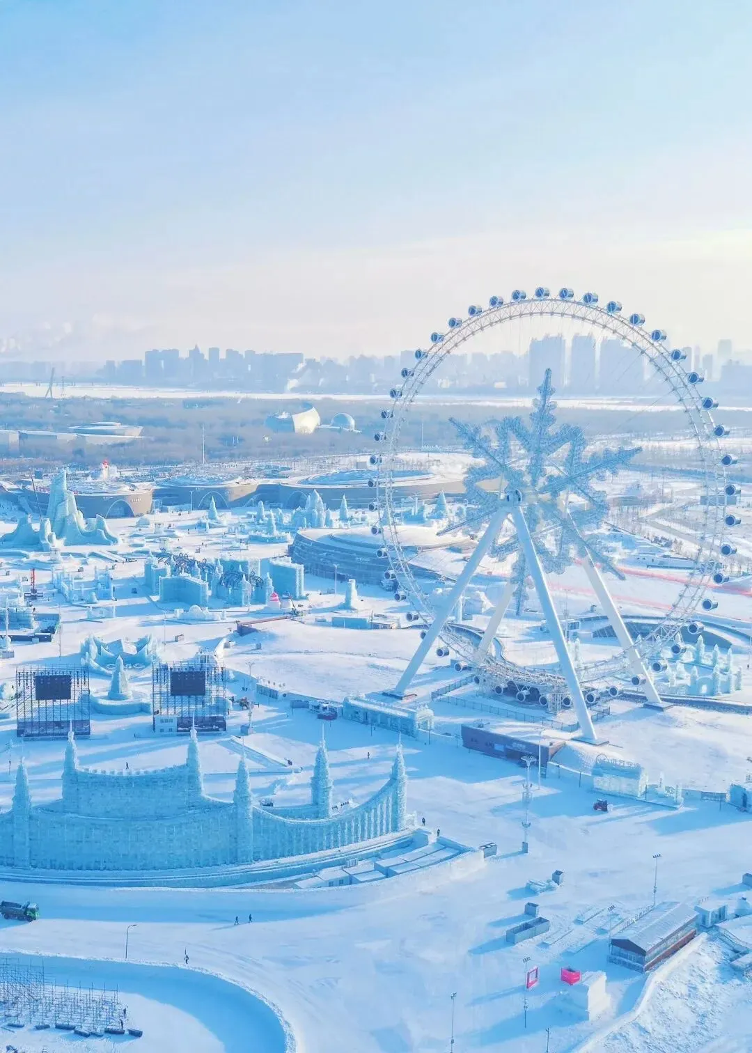 松花江上的“极寒狂欢”, 在厚达半米的冰面上体验冰上自行车、雪圈漂移,或者玩一次火遍全网的“泼水成冰”,看热水在空中瞬间凝结成冰箭。