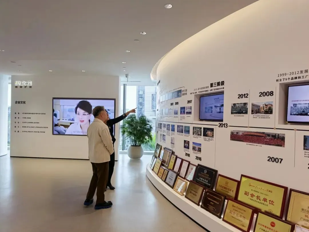此次走访深入樊文花产业园、直营/连锁门店,樊文花品牌创始人樊文花女士热情接待,并详细介绍了公司38年来的发展历程、创新成果与社会贡献。