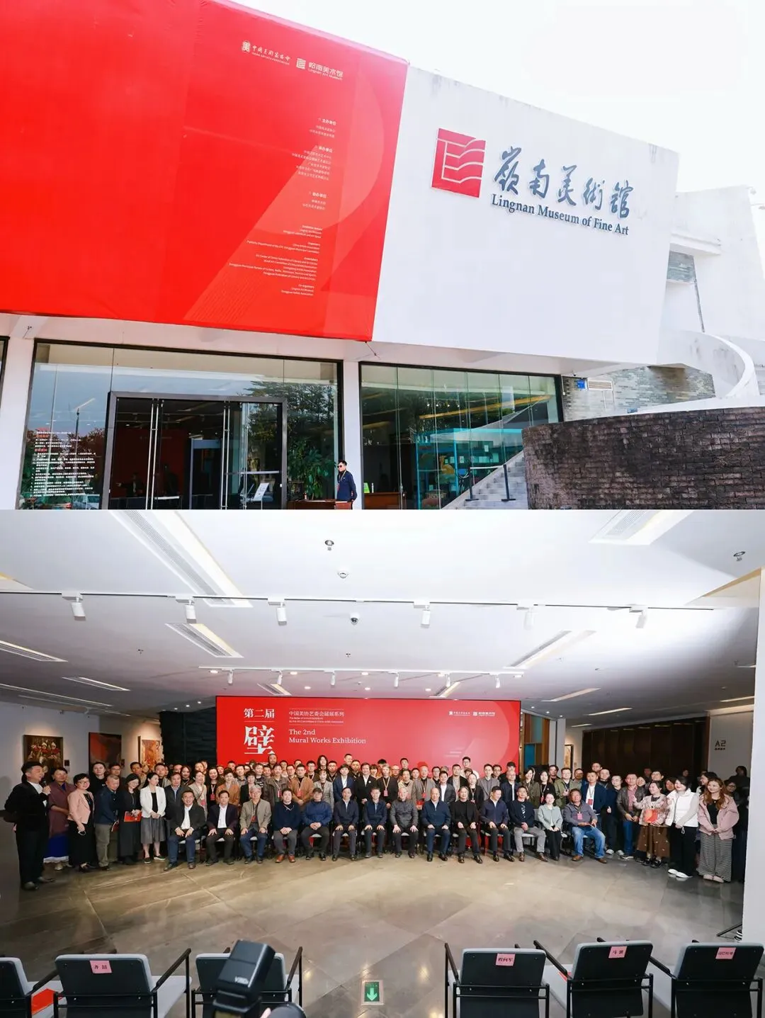 2025年11月27日下午,由中国美术家协会、中共东莞市委宣传部主办,中国文联美术艺术中心、中国美术家协会壁画艺术委员会、广东省美术家协会、东莞市文化广电旅游体育局、东莞市文学艺术界联合会承办,岭南美术馆、东莞市美术家协会协办的“中国美协艺委会届展系列:第二届壁画作品展览”在岭南美术馆开幕,展览分别在岭南美术馆及东莞文艺空间两个展区同时开展。中国美协分党组书记、驻会副主席屈健,中国文联美术艺术中心主任李伟,中国美协壁画艺委会主任、中央美术学院教授王颖生,中国壁画学会会长孙韬,广东省文联党组成员、专职副主席高景海,广州美术学院副院长、广东省美协副主席蔡拥华,广州艺术博物院(广州美术馆)院长、广东省美协副主席罗奇,东莞市人大常委会副主任杨晓棠,中共东莞市委宣传部副部长、东莞市新闻出版局(版权局)局长蔡国康,东莞市文化广电旅游体育局党组书记、局长宁康,东莞市文联党组书记、主席张彤飚,中国美协壁画艺委会副主任马强、边巴旺堆、程向军、潘汶汛,秘书长齐喆,委员王志新、王巍、苏晓旺、李靖、李路葵、陈文利、谢宗君,广东省美协秘书长王瑾妤,东莞市文化广电旅游体育局党组成员、副局长杨嘉,以及地方美协、行业协会、艺术院校、美术馆的嘉宾代表和参展作者、美术爱好者等出席开幕式。此次展览收到来自全国各地的投稿作品1252件。经过评委会严格的初评、复评,最终遴选出257件入选作品,展览作品类型丰富,涵盖壁画原作、壁画复制作品、模拟上墙实验壁画作品等,充分展现了当代壁画创作的多元探索与创新活力。入选作品无论是题材的广泛度,对国家发展重点事件的关注,还是在艺术表达的精深和材料呈现的专业方面,都达到了较高水平,展现了当代壁画的整体创作面貌。本土青年艺术家代表陈木的壁画作品《梦游园》荣幸入选此次展览,重点展陈于岭南美术馆一楼一号厅。展览地点