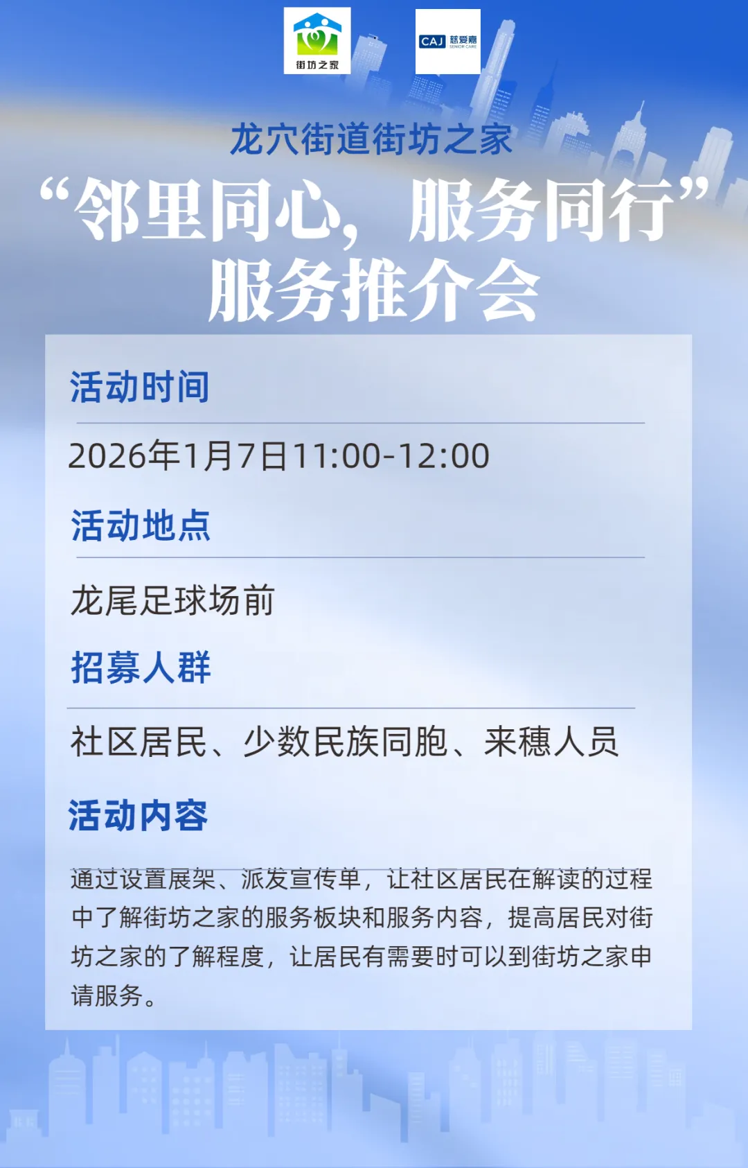 【活动预告】“邻里同心,服务同行”服务推介会