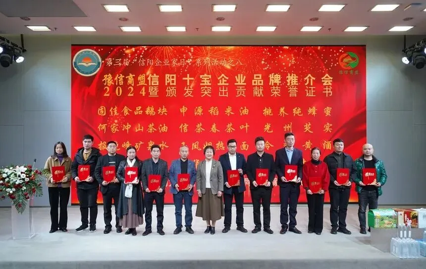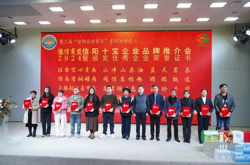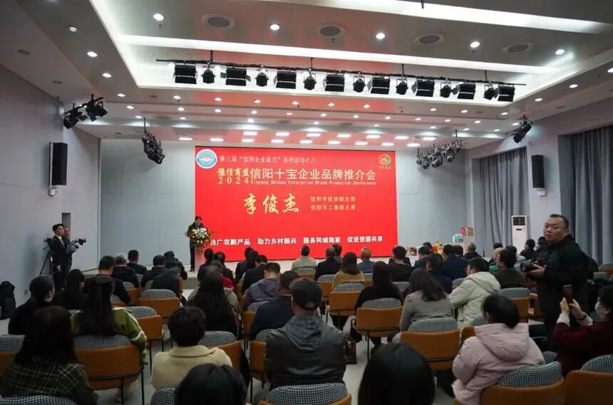 11月26日,2024信阳十宝企业品牌推介会暨第五届年会在百花之声·信商之家举行。信阳市政协副主席、市工商联主席李俊杰,国家统计局河南调查总队二级巡视员宋瑞,信阳市委统战部副部长、市工商联党组书记宋昊,信阳市政协提案委主任裴军,信阳市预制菜技术创新研究院技术顾问代军,信阳市人民政府驻郑州办事处副主任郭会杰博士,信阳市商务局副局长王中锋,信阳市文化广电和旅游局副局长顾先彬,信阳市机关事务中心副主任焦阳,信阳市工商联党组成员、副主席吴正君、王亚、王岱军参加会议。