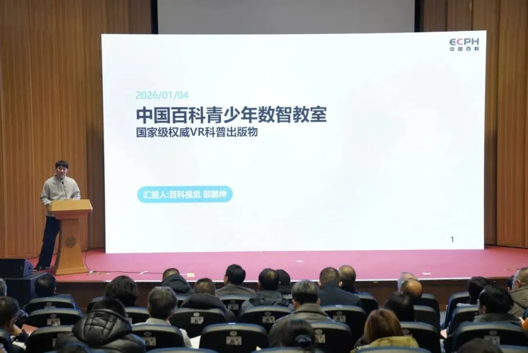 首先,中国大百科全书出版社社长、党委书记高世屹致辞,回顾百科社的发展历程,强调在新时代背景下,百科知识体系在文化传承、教育创新与国家软实力建设中的重要作用。他指出,百科社拥有全国独一无二且不可替代的出版品牌。中国书刊发行业协会副秘书长鲍黎钧致辞。2026年图书发行市场面临巨大挑战,各种传统业态的增长不容乐观,纸电一体化已经成为明确的大趋势。中国大百科全书出版社作为国家级出版单位,为弘扬中华文化作出了巨大贡献,在新的历史时期,更要发挥积极作用,出版更多优质产品,打造具有影响力的新业态,助力行业健康发展。会议首先展示了以“中国百科网”为核心、传统介质与新媒体融合、辐射多领域的权威数字产品矩阵核心产品。中国大百科全书出版社总经理、副总编辑刘杭阐述第三版纸质版的权威性、系统性,并重点介绍“中国百科网”作为重要数字知识平台的功能与优势。百科社以核心资源赋能中国基础教育领域,推出一系列数字化产品,共同构建中国基础教育百科的和谐生态。知识出版社常务副社长张京涛介绍中国百科网·中小学基础教育平台情况。该平台是一个专为学校、教师群体服务的教育资源平台,其核心优势在于资源权威性与专业性。平台依托优质内容资源,整合中国大百科全书出版社、知识出版社优质图书、学术专著及期刊论文,构建了系统、可靠的内容体系。同时,平台还提供专业赛事活动举办、专著出版、论文发表等服务,旨在成为教师开展教学、教研、专业发展与学术提升的权威资源枢纽,全面助力基础教育质量提升。新媒体中心副主任谢雪集中展示获奖产品《中国军事百科全书数据库》《赤子初心——科学家精神与中国现代科技史》《中华传统艺术精品百科资源库(中小学美育版)》以及《中国传统书法百科》《劳动教育资源平台》。将教育需求与文化热点相结合,用场景化的解决方案提升数字化产品市场竞争力。青少年素质教育市场潜力巨大,跨学科VR教育迎来蓝海市场,面对教育数字化的必然趋势,依托自身专业权威的百科全书产品,百科社推出了《中国百科青少年数智教室》。该产品兼具趣味性与教育性,为青少年的数字教育提供了创新解决方案。视觉分社技术总监邵鹏坤介绍了以天宫太空站、人体探秘、恐龙时代、深海探险、穿越时空的大运河、红色教育为主题的丰富课程,为青少年带来跨学科融合的沉浸式体验。百科社副总经理张弋辉向渠道介绍了2026年重点新书出版计划。百科社青少年科普产品线充分发挥专业内容与权威专家优势,打造多场景适配的优质科普读物。2026年,百科社将推出《中国儿童通识百科全书》《中国儿童艺术百科全书》《中国儿童新科技百科全书》《中国儿童新疆百科全书》《飞行汽车百科全书》等为中国青少年量身打造的科普图书。百科社教育类产品线以市场化与创新为抓手,打造差异化竞争优势。《火花思维小学数学系列》《中华优秀传统文化教育丛书》《波哥讲公考》《人工智能教材》紧贴市场需求,值得关注。社科学术产品线回应时代呼唤,让学术亲近大众,向大众普及学术,兼具学术性与可读性。其中,学术品牌“纵横百家”聚焦于文化名人传记,2026年即将出版传记《林非自传》《俯首横眉——鲁迅图传》,展现知识分子的精神世界。口袋书系列《任继愈文集》《四季国学》《我们从哪里来?到哪里去?——南怀瑾谈生命》让读者在轻松的阅读体验中获得知识的滋养和思想的启迪。史宬工作室打造的渤海小吏读史系列持续多年畅销市场,《从长安到罗马》《明治维新二十讲》等轻学术作品,普及且有深度。
