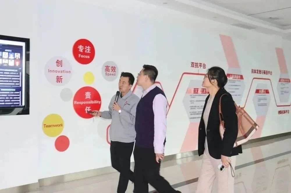 休息片刻后,相关负责人带领我们参观公司文化走廊,向我们介绍明星产品、车间情况特色展示屏、研发平台以及团队风采等。