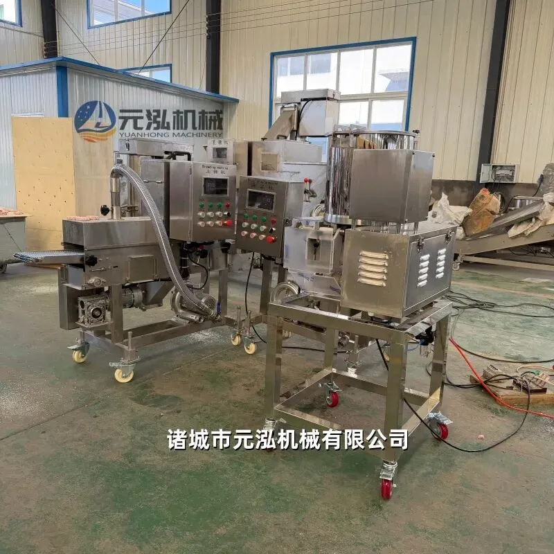 小型肉饼生产线/肉饼生产线成套设备/连续式小型肉饼生产线裹糠机有多种型号可以选择,从糠的粗细上来讲,有可以使用粗糠的,比如像鱼鳞片的这种,还有粗颗粒的面包糠。还可以使用细糠的,型号也有很多种可选择。这种西面包糠比混合粉的颗粒要大一些,但相对于粗糠就细不少了。
