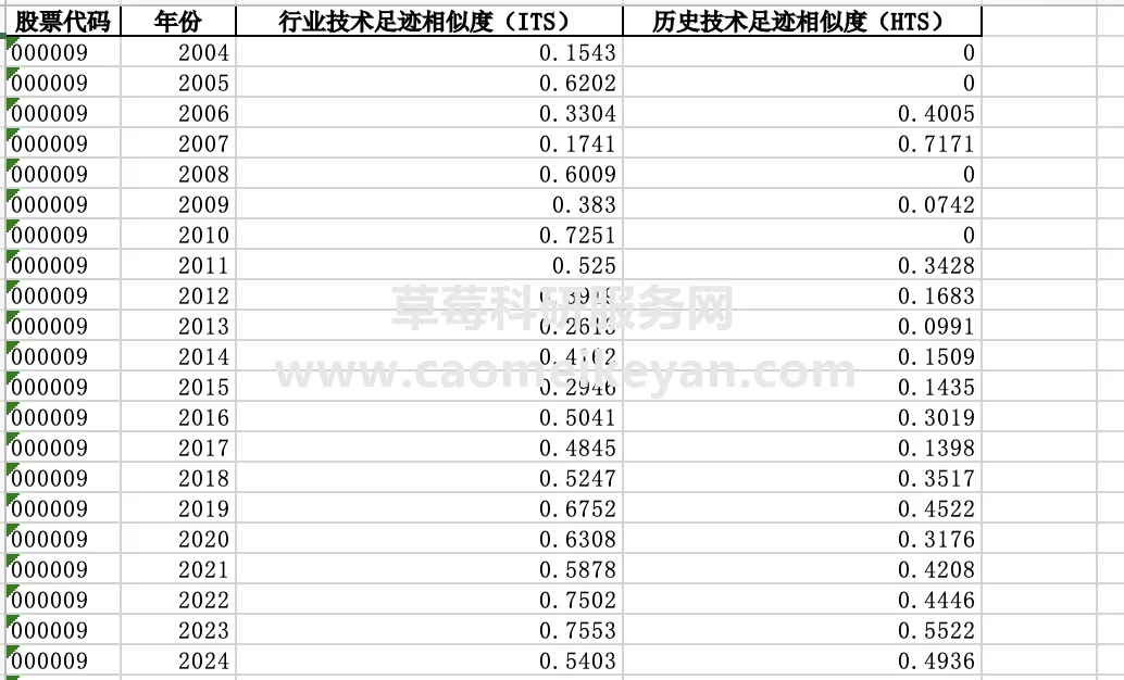 1、资料名称:2024-2000年上市公司企业技术足迹相似度数据
