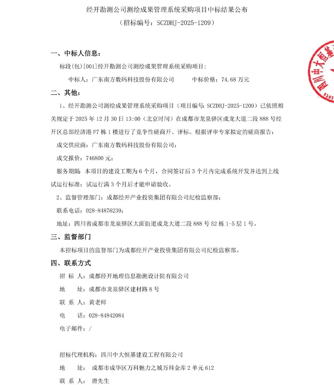 经开勘测公司测绘成果管理系统采购项目中标结果公布