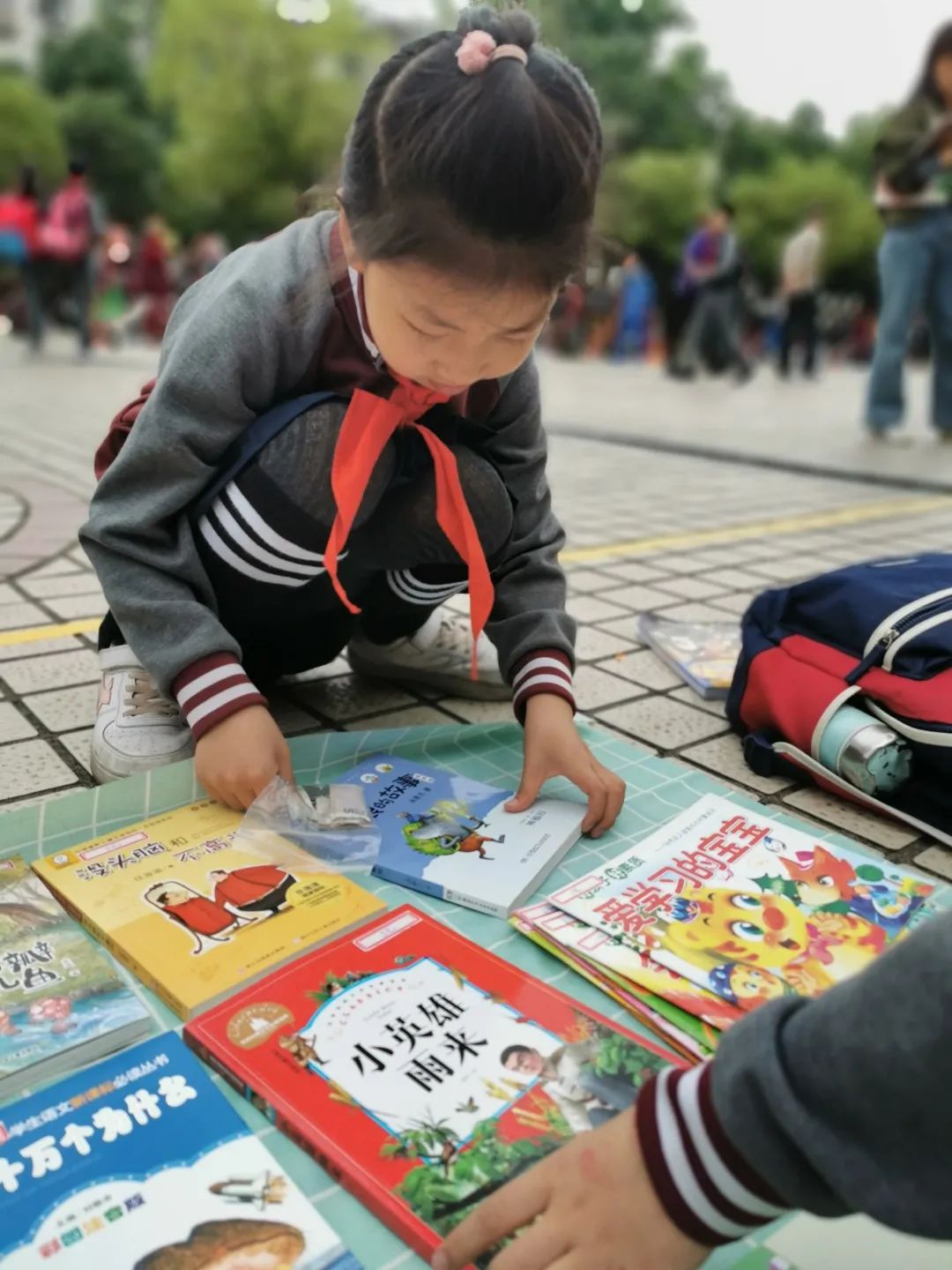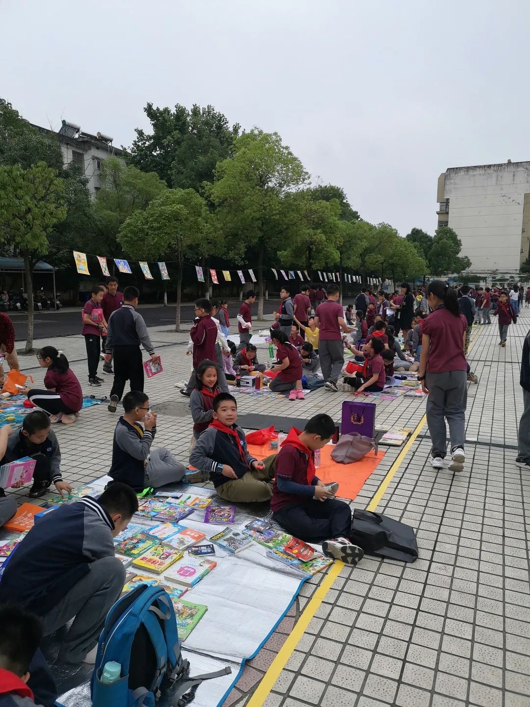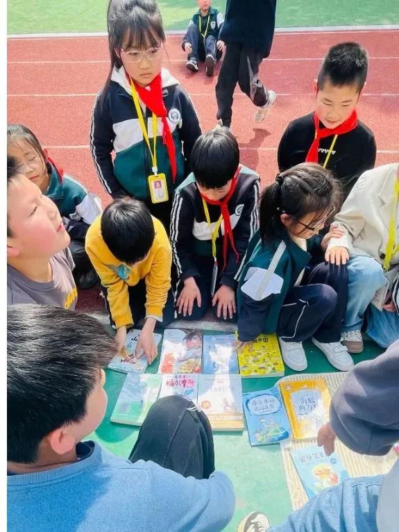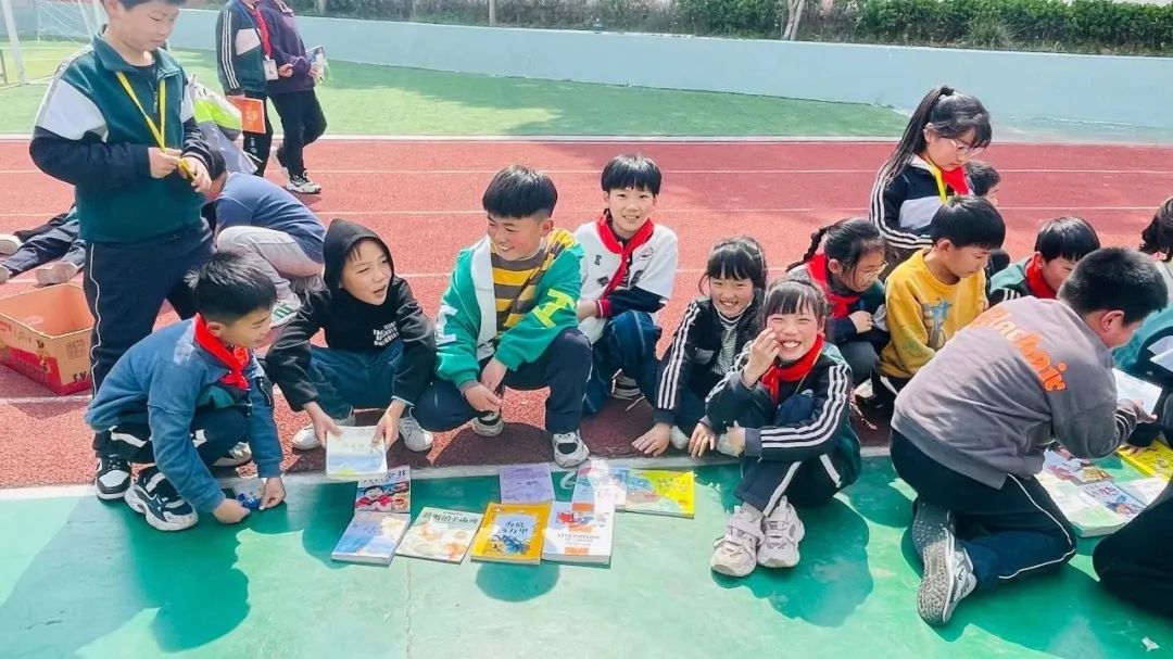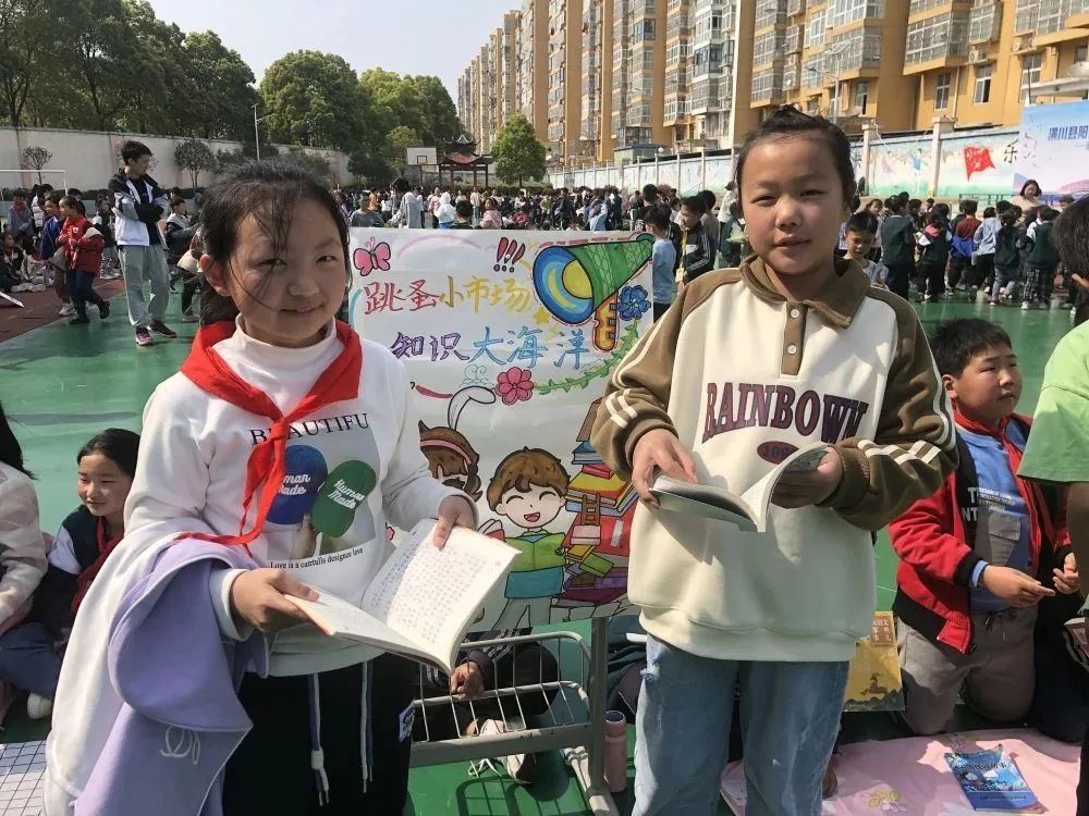“这边走这边看 这边不看终生遗憾”、“走过路过,千万不要错过,抓住机会换实惠”......现场的图书应有尽有:图画类、童话类,历史类、科学类、益智类等书籍琳琅满目,精装的《四大名著》《草房子》《海底两万里》《鲁滨逊漂流记》……各类好书让人爱不释手。操场上人声鼎沸,热闹非凡。让我们一起走进如火如荼的交易现场。