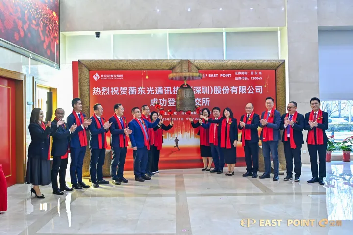 继2025年12月30日卧安机器人成功登陆港交所后,12月31日,宝安区本土培育的又一优质企业——蘅东光通讯技术(深圳)股份有限公司(股票代码:920045,下称“蘅东光”)在北京证券交易所正式挂牌上市。