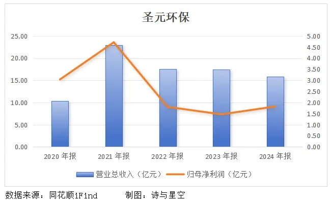 自上市以来,圣元环保的营收与利润一路下滑,可谓典型的“上市即巅峰”。
