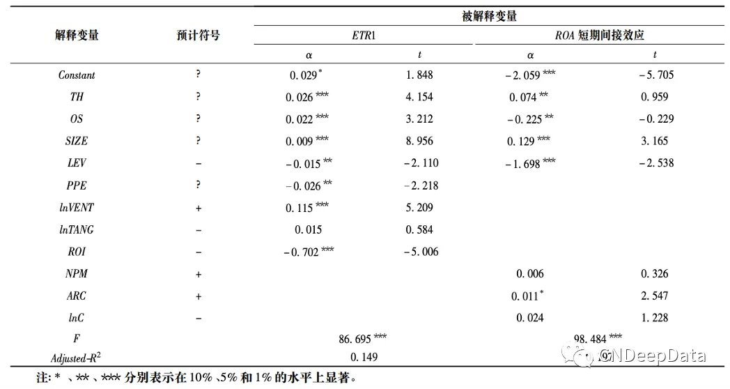 其中,被解释变量 ETR 为企业的实际税率,ETR1 = ( 所得税费用-递延所得税费用) /(税前利润 -递延所得税费用/法定税率)。ETR越小,企业实际税率越低,税负越低。