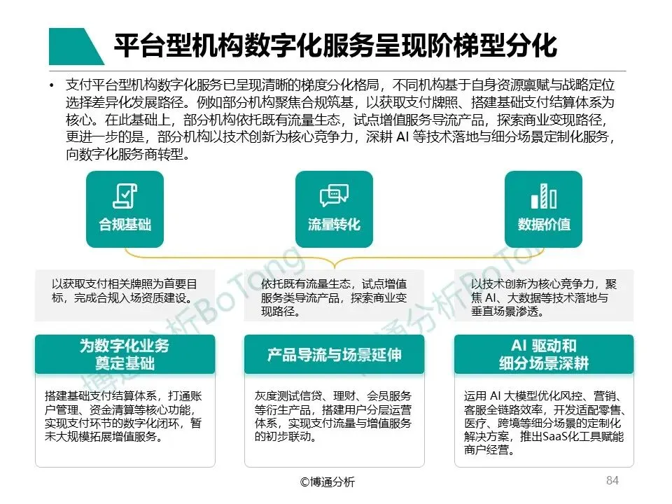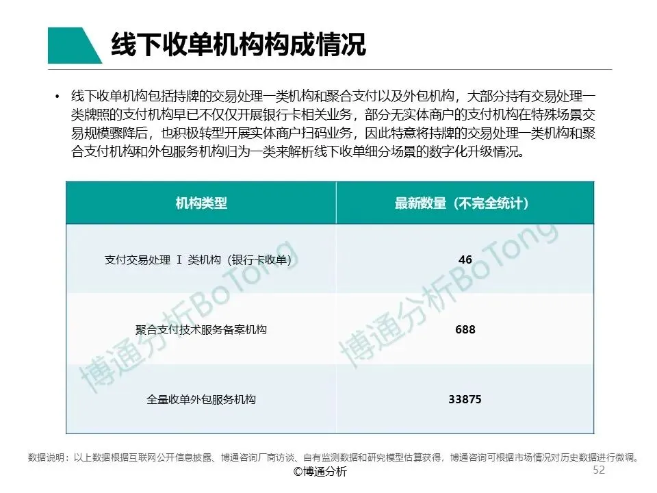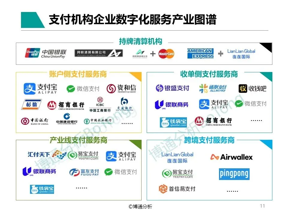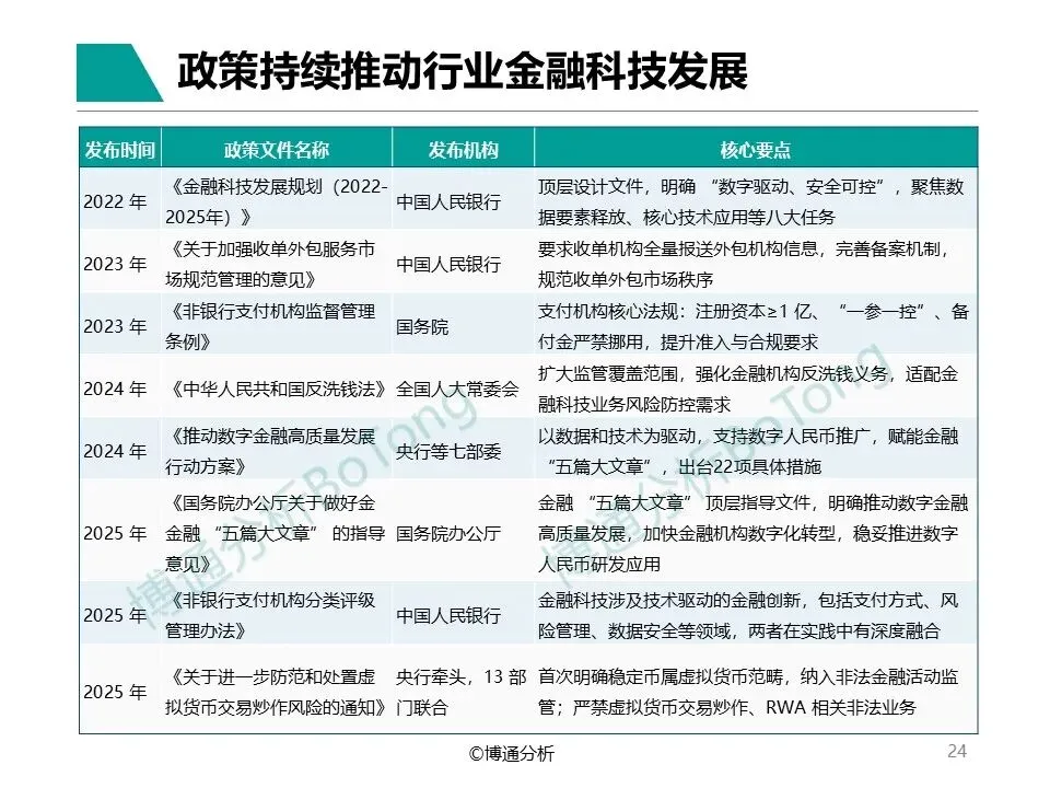 由于2025年报告将分类分析各细分产业机构自身数字化发展情况,以及服务过程中产生的的新产品、新模式,报告将加入更多数据佐证,突出成熟的产业链构成,分析过程中按照《非银行支付机构监督管理条例》规定牌照类型对机构进行分类描述。