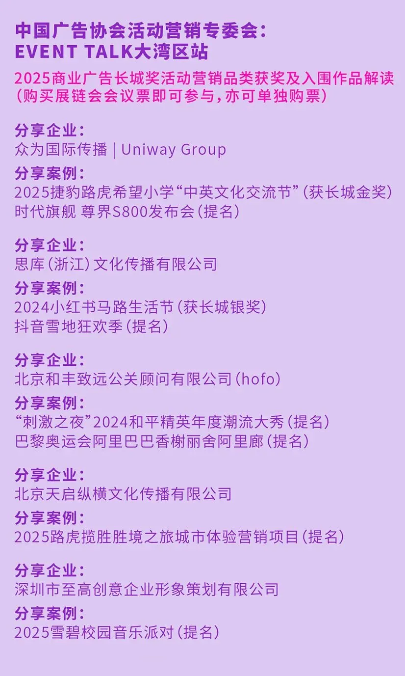 理解这个逻辑,就不难理解为什么中国广告协会活动营销专委会EVENT TALK大湾区站会出现在展链会上了。