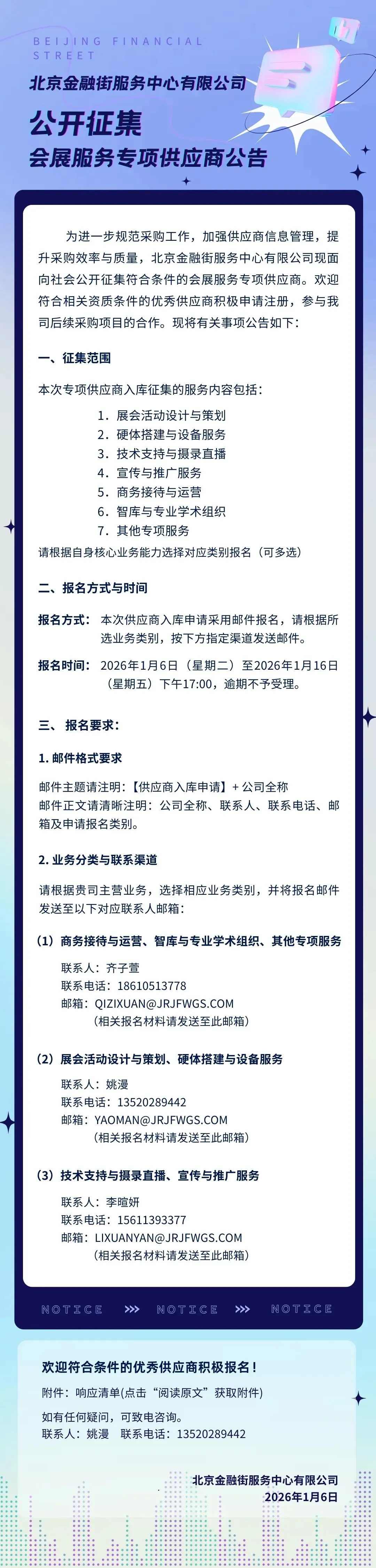 北京金融街服务中心有限公司关于公开征集会展服务专项供应商入库的公告