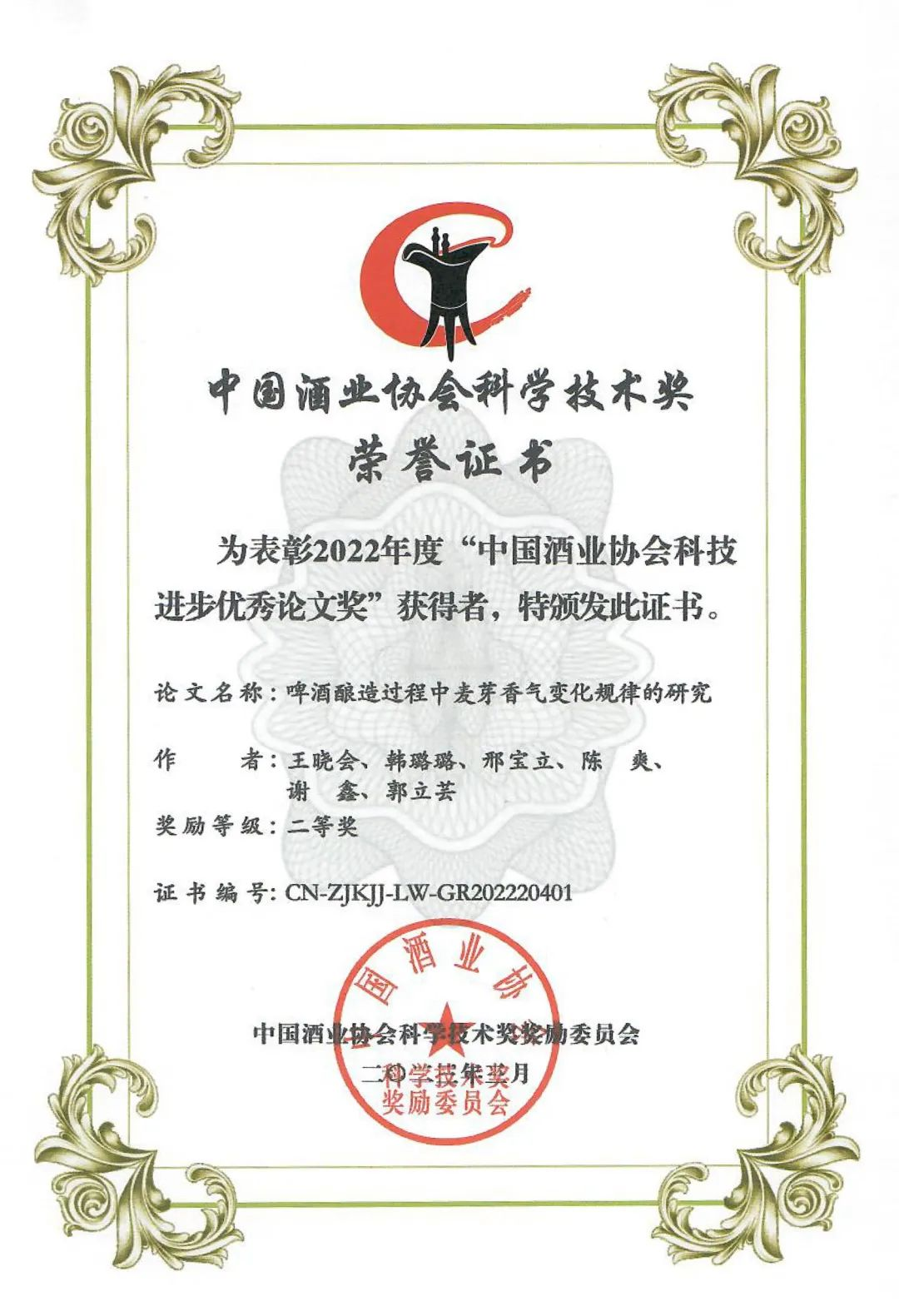 2022年度中国酒业协会科学技术奖