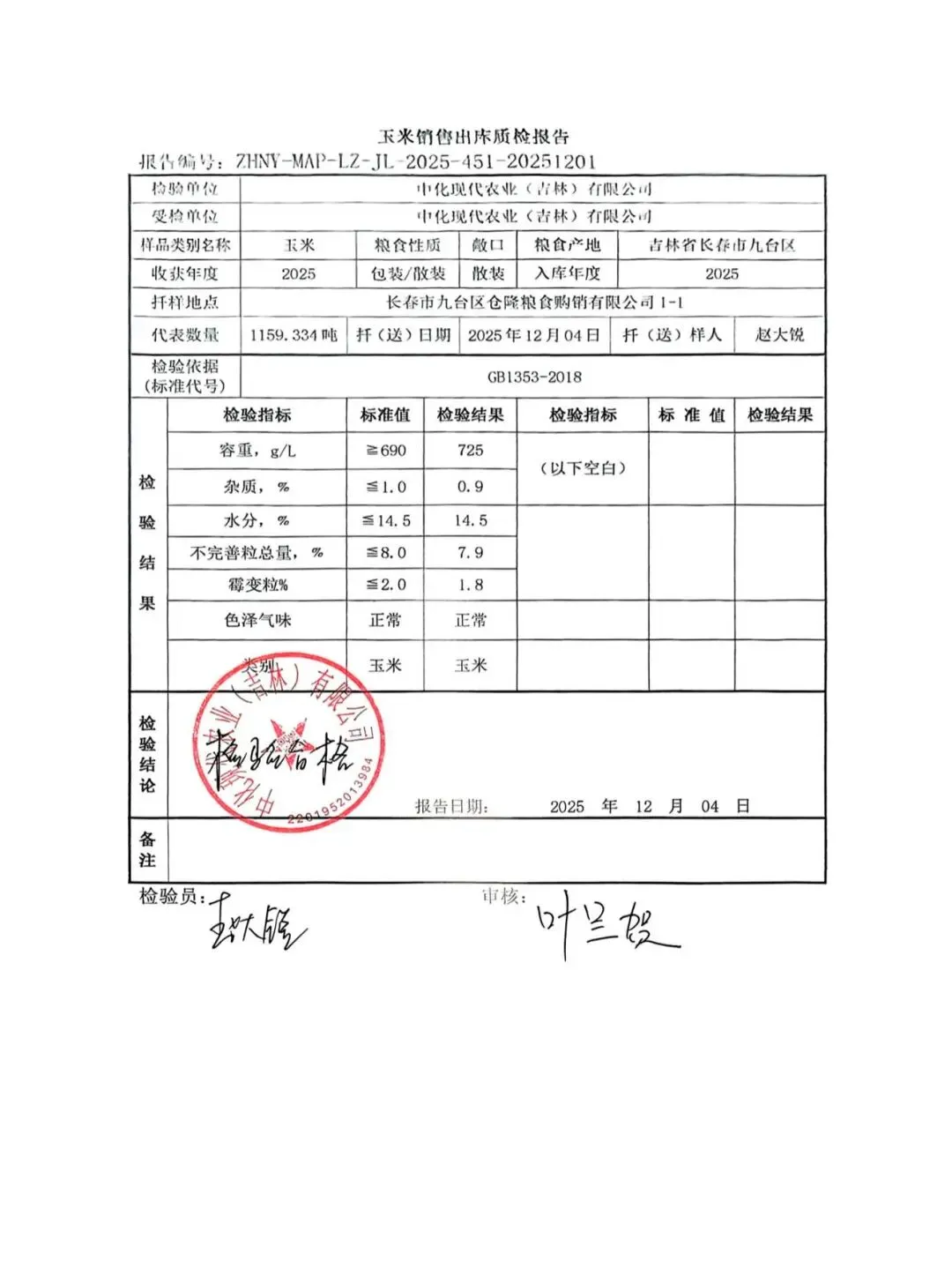 2026年1月8日【14:30】中化现代农业(吉林)有限公司玉米竞价销售交易清单