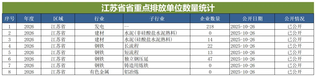 在建材行业纳入重点排放单位情况:常州市3家;南京市4家;无锡市2家;徐州市2家;盐城市1家;镇江市2家。