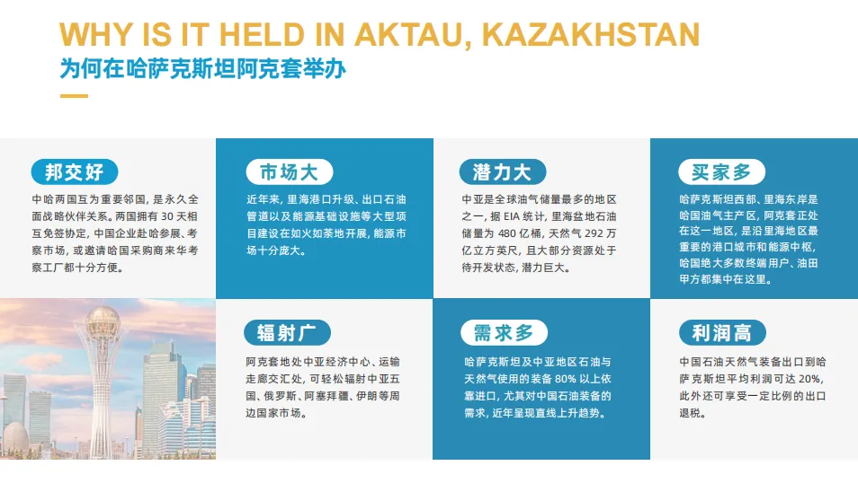 2026年9月,相约里海之滨的阿克套,共探油气宝藏,共筑合作桥梁,在中哈能源合作深化的浪潮中,抢占先机,共赢未来!立即锁定展位,解锁哈萨克斯坦油气市场无限可能!