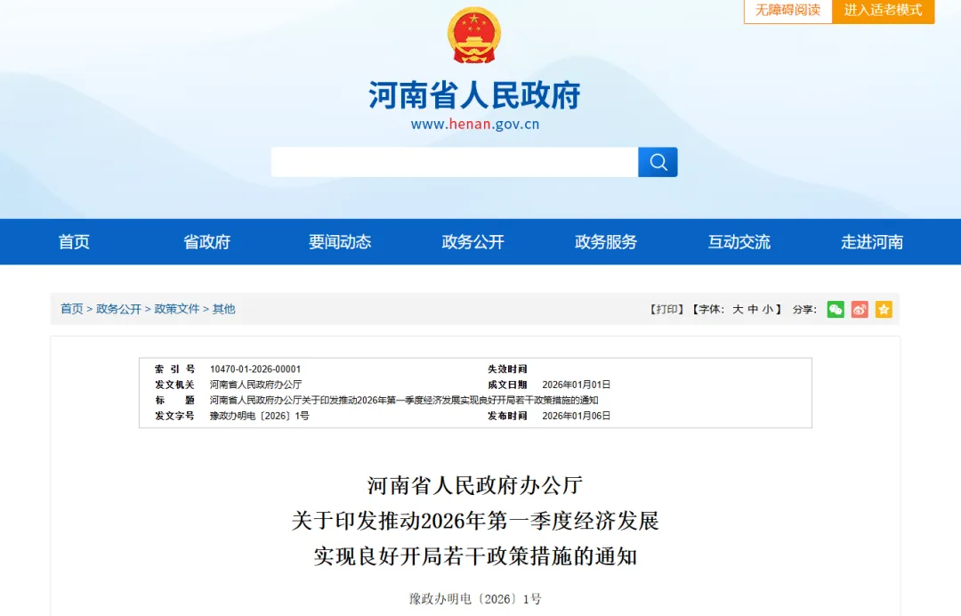 为深入贯彻党的二十届四中全会精神和习近平总书记在河南考察时重要讲话精神,全面落实中央经济工作会议部署和省委经济工作会议要求,聚焦“1+2+4+N”目标任务体系,全力打好打赢冬春季攻保战役,推动2026年第一季度经济发展实现良好开局,为完成全年目标任务打下坚实基础,制定如下政策措施。