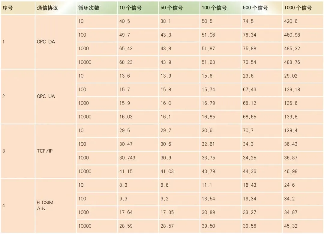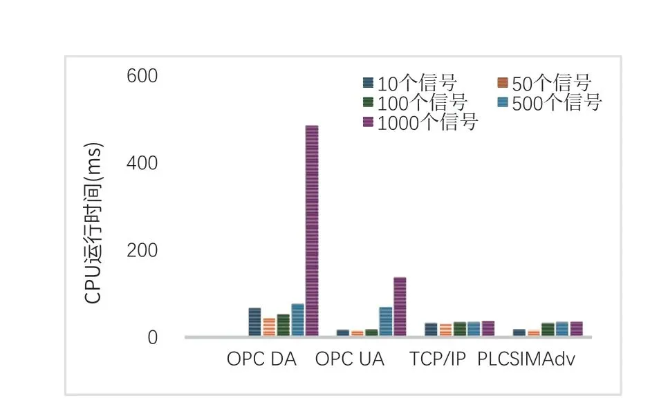 表1 不同信号和通讯协议下虚拟调试过程中CPU 运行时间(ms)